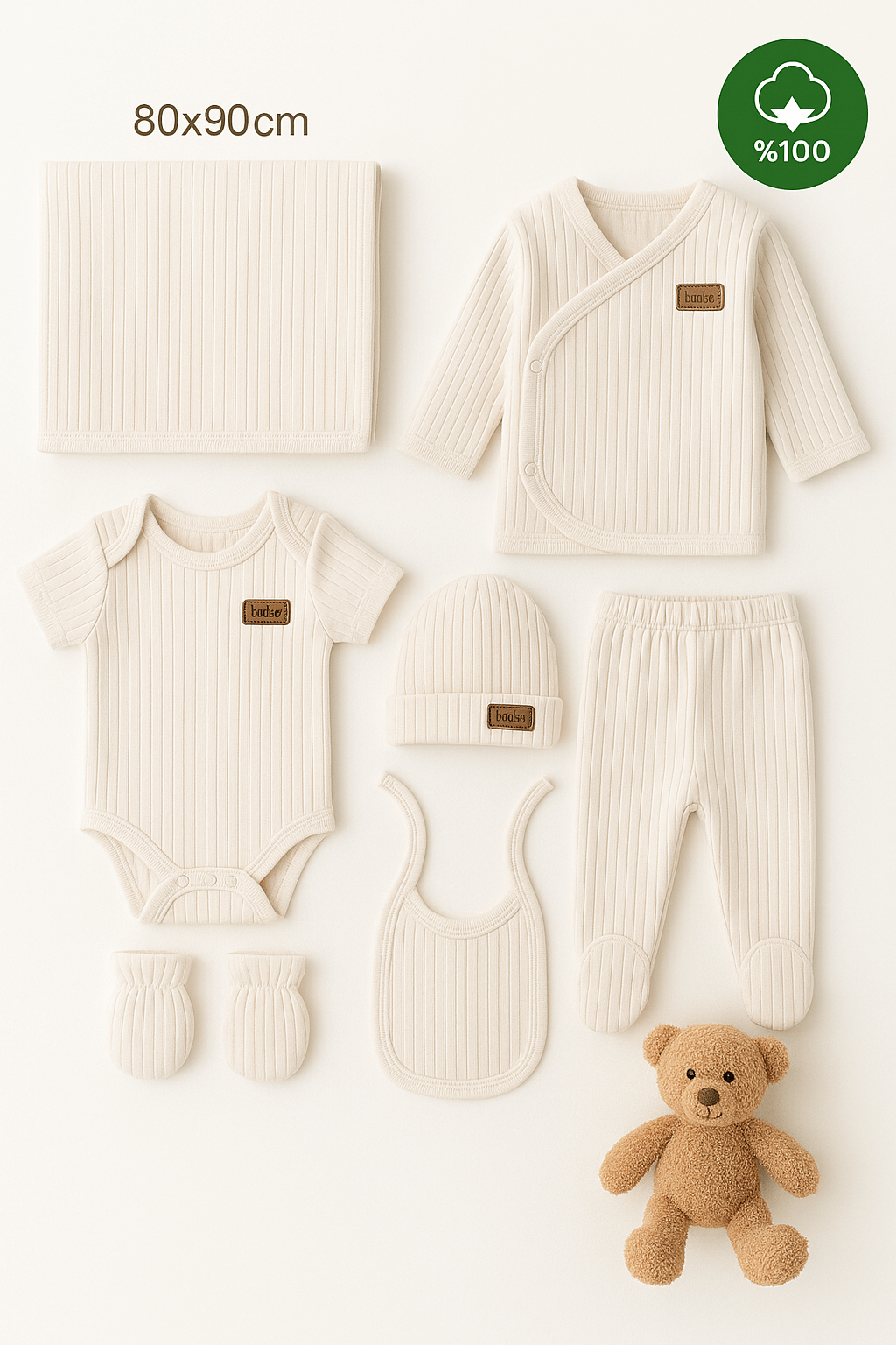 Bebeğinizin ilk günlerinden itibaren ihtiyaç duyacağı tüm parçaları bir arada sunan 7’li Yenidoğan Hastane Çıkış Seti, %100 pamuk fitilli kumaşı ile hem yumuşak hem de nefes alabilir yapıya sahiptir. Cildi tahriş etmeyen, rahat kesimi sayesinde bebeğinizin özgürce hareket etmesine olanak tanır. Mevsimlik kullanıma uygundur.
