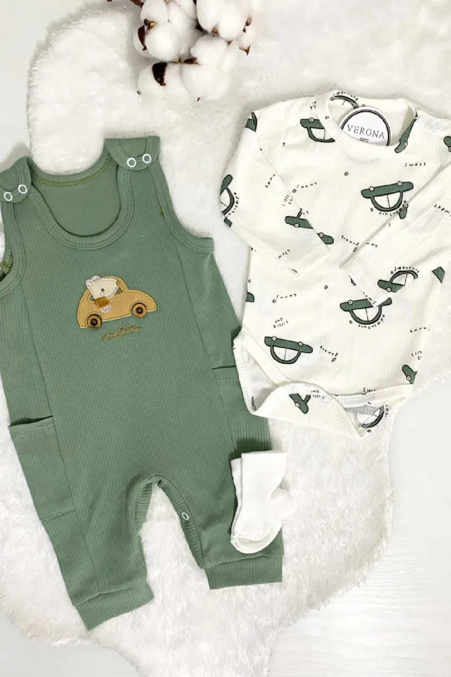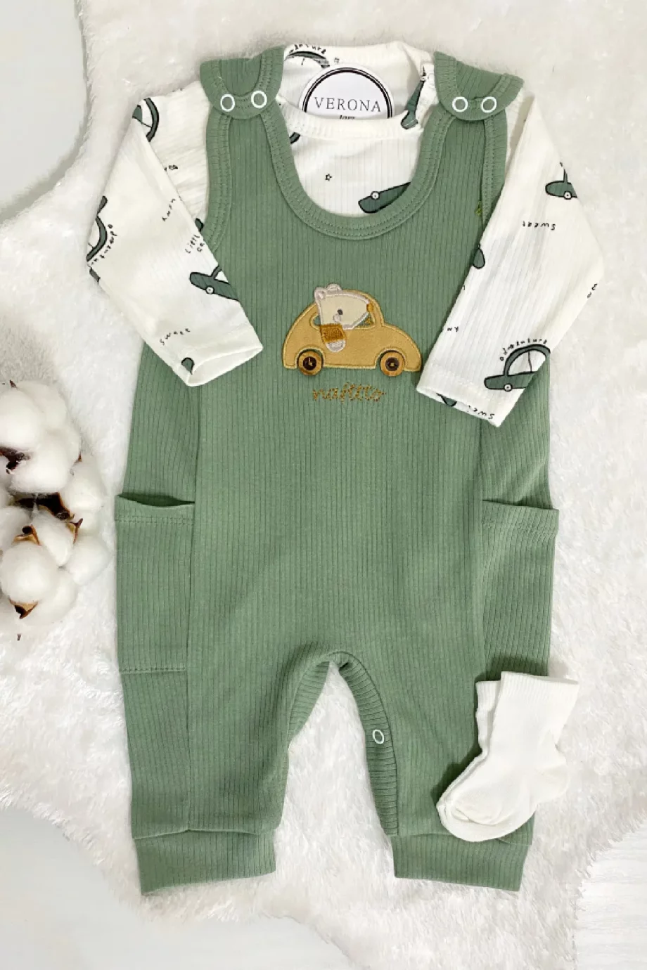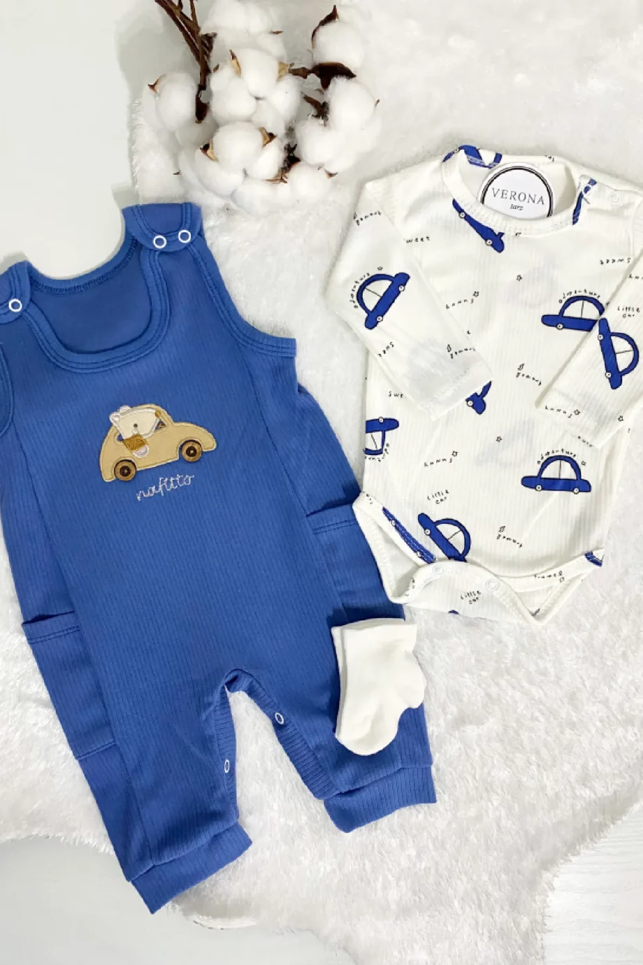 Ana Sayfa / Takım / Erkek Bebek / Nakışlı Arabalı 2li Salopet Takımı Çorap Hediye