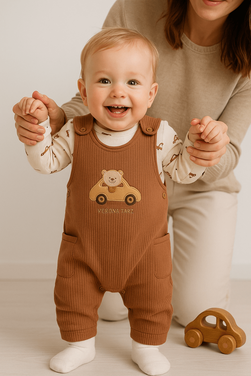Nakışlı Ayılı 2li Salopet Takımı Kahve